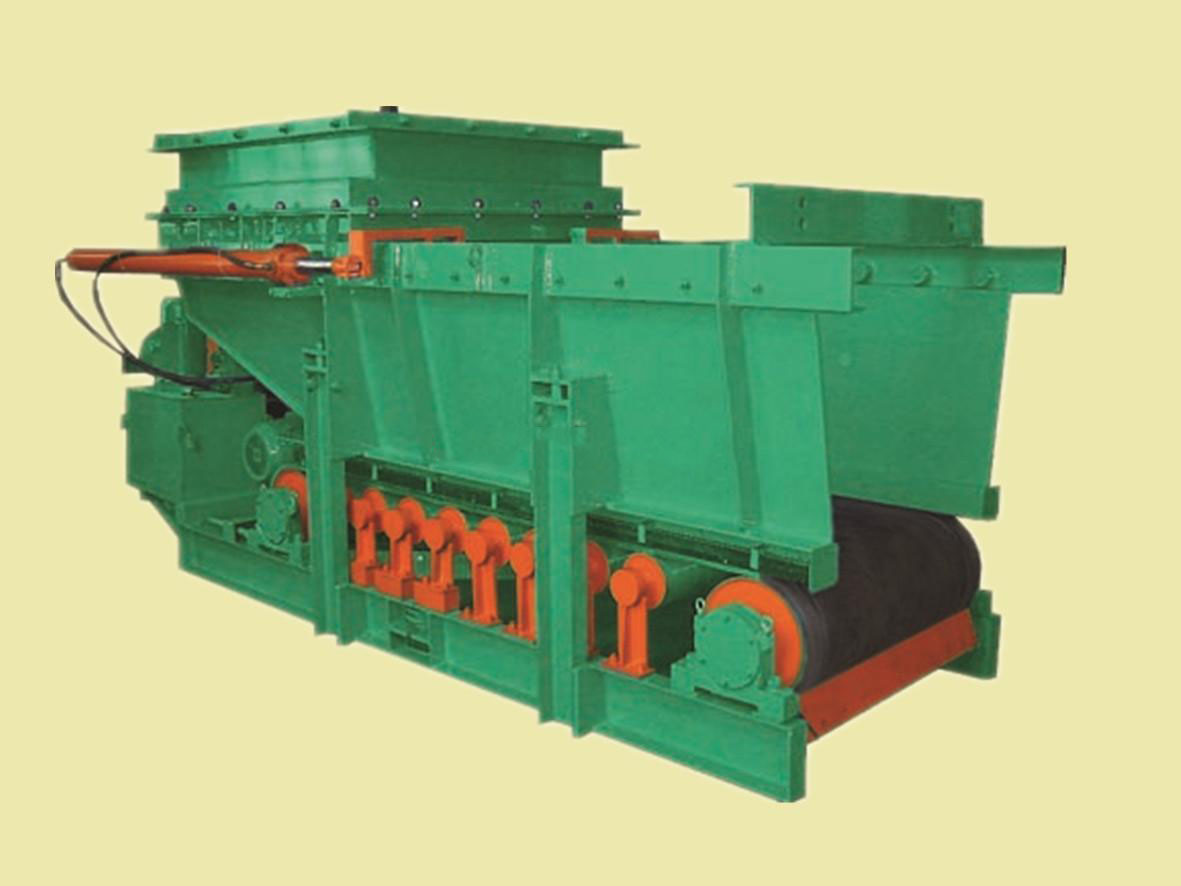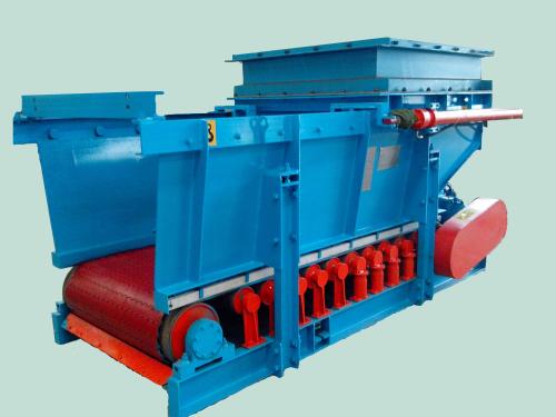 The material in the silo enters the guide groove through the connecting section and falls onto the steel wire tape. When the tape is stationary, the material stops moving due to internal friction, forming a static accumulation at a certain angle at the discharge port; When the driving drum starts to rotate under the drive of external power, it drives the tape to move, and the tape drives the material on it to guide to the discharge port. The running tape turns back after unloading at the discharge port, and the material is continuously discharged from the discharge port, thus completing the feeding process; The secondary sealing device provides sealing for materials leaking from the gap between the guide groove and the tape; Changing the feeding amount can be achieved by adjusting the speed control handwheel of the planetary friction type continuously variable transmission of the rotating arm to change the output shaft speed and the size (height) of the tape running speed, thereby changing the feeding amount; Changing the feeding amount can also be achieved by selecting a frequency converter and adjusting the motor speed to change the feeding amount. During the operation of the belt coal feeder, the main load of the system is supported by rolling bearings, resulting in low operating resistance, low required driving power for the equipment, and long working life of all system components.
