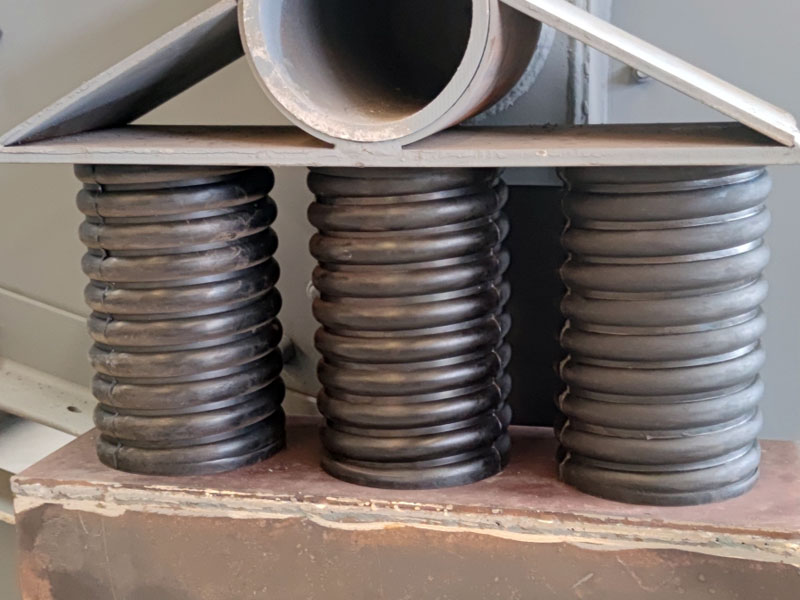Composite spring is an elastic body composed of metal coil spring and rubber, which combines the advantages of metal spring and rubber spring and overcomes their disadvantages. Stable in shape and mechanical properties, capable of withstanding loads and large deformations. Good vibration isolation and noise reduction effect, with advantages such as smooth operation and short resonance zone time, especially suitable for large vibration equipment or large shock absorption equipment in industries such as mining, metallurgy, and coal.